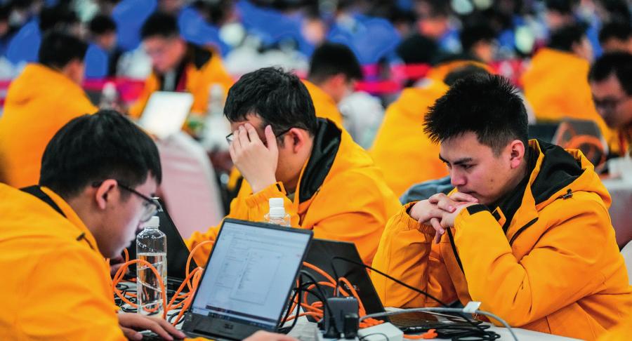 参赛选手在贵阳举行的第四届“网鼎杯”网络安全大赛决赛阶段比赛中