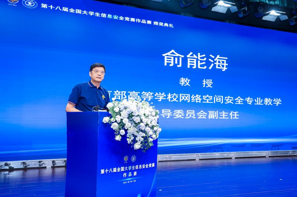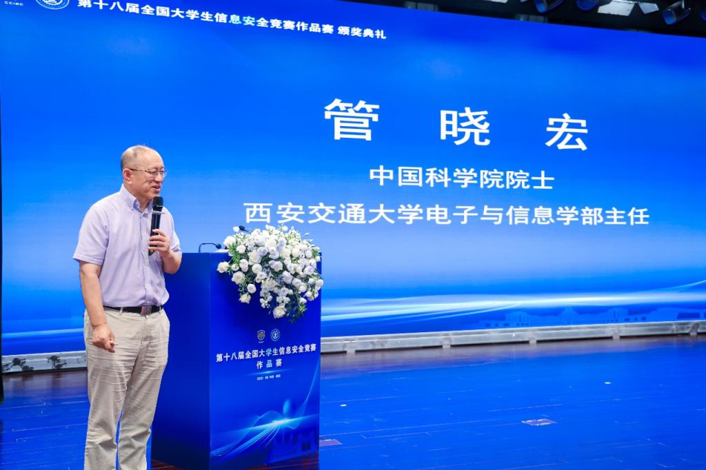 颁奖典礼由教育部高等学校网络空间安全专业教学指导委员会副主任委员俞能海教授主持。西安交大党委常委、副校长洪军教授,上海交通大学信息内容分析技术国家工程实验室主任、教育部高等学校网络空间安全专业教学指导委员会副主任李建华教授,西安交通大学网络空间安全学院院长苏洲教授、西安交通大学网络空间安全学院党委书记韩博研究员等出席活动。教育部高等学校网络空间安全专业教学指导委员会秘书长封化民教授宣布获奖名单。