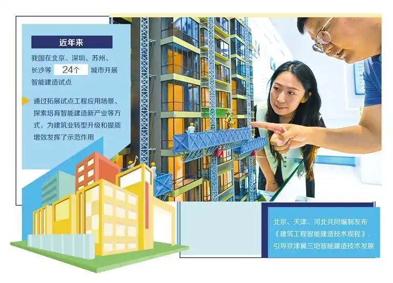 智能建造是建筑业转型发展的重要内容之一。近年来,我国在北京、深圳、苏州、长沙等24个城市开展智能建造试点,通过拓展试点工程应用场景、探索培育智能建造新产业等方式,让这一新型建筑方式加快落地应用,为建筑业转型升级和提质增效发挥了示范作用。